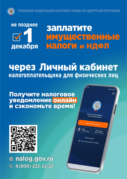 Информационные материалы УФНС России по Удмуртской Республике о сроках уплаты налогов физических лиц: